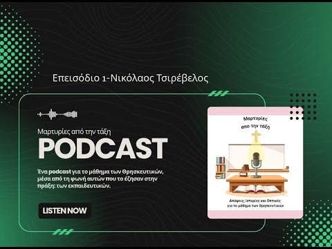 "Καλωσορίσατε στο πρώτο podcast αφιερωμένο στους εκπαιδευτικούς του μαθήματος των Θρησκευτικών με τίτλο Μαρτυρίες από την τάξη – Απόψεις, Ιστορίες και Οπτικές για το μάθημα των Θρησκευτικών.