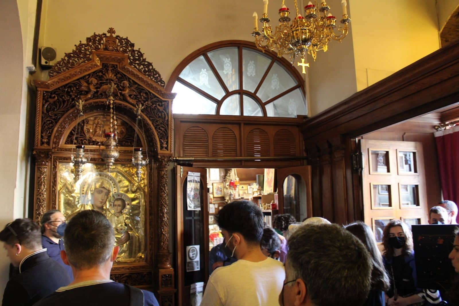 Τελευταίος σταθμός αυτής της περιήγησης ο ΙΝ Παναγίας Λαοδηγήτριας. Τους μαθητές/Τις μαθήτριες υποδέχτηκε ο αρχιμανδρίτης π. Βαρνάβας Γιάγκου, προϊστάμενος του ναού, Ηγούμενος της ΙΜ Αγίας Θεοδώρας Θεσσαλονίκης και διευθυντής του Γραφείου Νεότητος Θεσσαλονίκης. Ο π. Βαρνάβας συζήτησε με τα παιδιά για θέματα σχέσεων, αυτογνωσίας και δημιουργικότητας που καταπολεμούν τον φόβο και υψώνουν την πίστη, την ελπίδα και την αγάπη ως τρόπο ζωής προς κάθε άνθρωπο ανεξάρτητα από το φύλο, την κοινωνική τάξη, την εθνική καταγωγή και τη θρησκευτική πίστη. Ενδεχομένως ο τίτλος της συζήτησης με τους/τις εφήβους να μπορούσε να είναι “Η ελευθερια της σχέσης”.